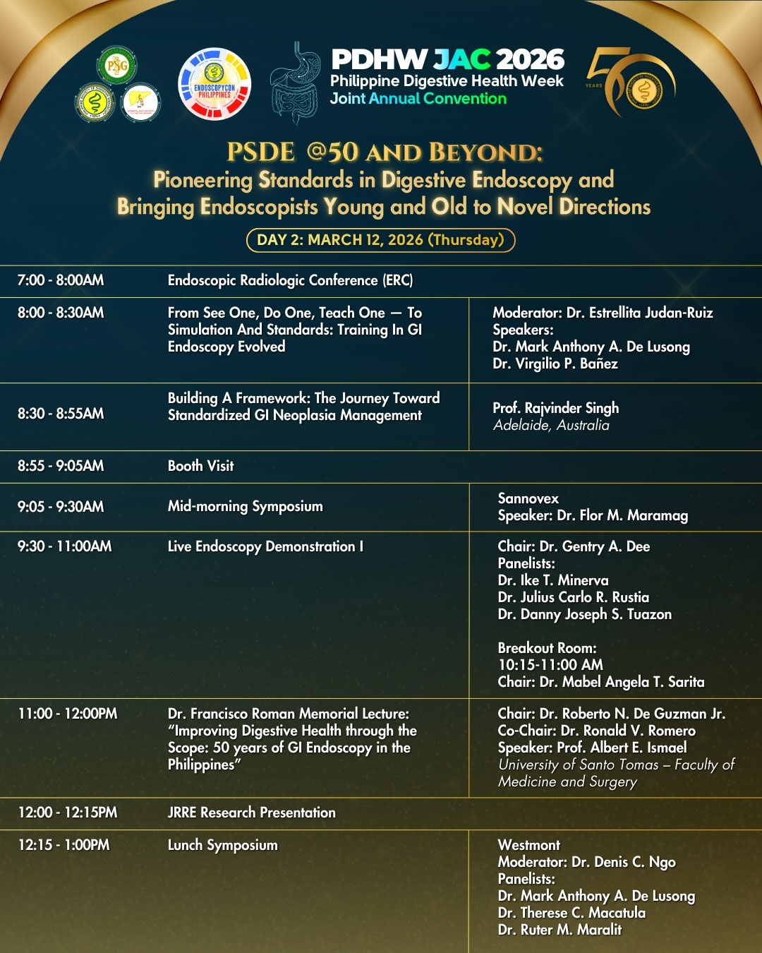 Join us as the Philippine Society of Digestive Endoscopy celebrates five decades of pioneering standards in GI endoscopy — and sets the stage for the next era of innovation.